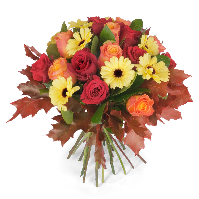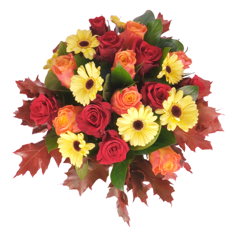 Ten bukiet to połączenie natury i elegancji w najpiękniejszej formie. „Obfita Jesień” urzeka swoją równowagą i stylem. Róże i gerbery w liściach klonu tworzą wyjątkowy efekt. Idealny na prezent lub do ozdobienia wnętrza. Świetnie sprawdzi się w biurze jako jesienna ozdoba!